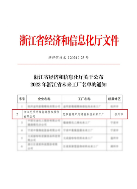 2024:“开元国际能源户用储能系统”上榜浙江省未来工厂